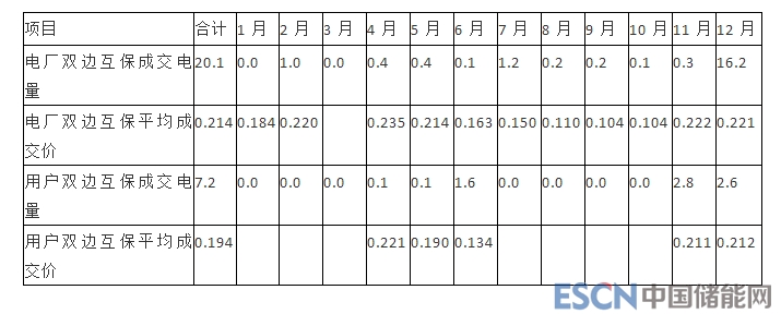 為幫助市場(chǎng)主體降低偏差,在每月月度交易結(jié)束后,市場(chǎng)主體可根據(jù)最新發(fā)、用電計(jì)劃,當(dāng)一方無(wú)法履行合同時(shí),可以向交易中心提交互保申請(qǐng),經(jīng)審核通過(guò)后,電廠(chǎng)之間或電力用戶(hù)(售電公司)之間能針對(duì)已簽訂的雙邊合同進(jìn)行互保交易。2018年共有17家電廠(chǎng)作為出讓方,28家電廠(chǎng)作為受讓方參與電廠(chǎng)雙邊互保交易,成交電量20.07億千瓦時(shí),平均成交價(jià)每千瓦時(shí) 0.21372元。用戶(hù)側(cè)共11家電力用戶(hù)(售電公司)作為出讓方,24家電力用戶(hù)(售電公司)作為受讓方參與用戶(hù)雙邊互保交易,成交電量7.18億千瓦時(shí),平均成交價(jià)每千瓦時(shí) 0.19426 元。