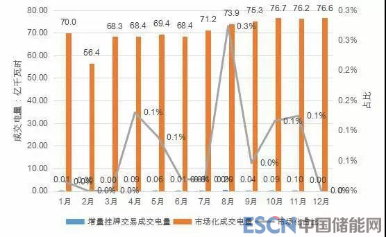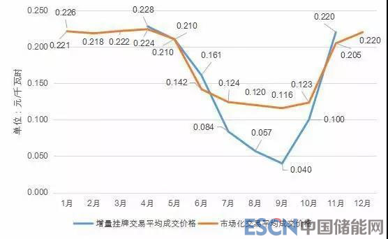 2018年,為鼓勵(lì)用戶(hù)擴(kuò)大生產(chǎn)增加用電量,尤其是汛期多消納水電,《方案》中設(shè)置了增量掛牌交易。其中2018年1-4月以2017年1-4月用電平均值為基數(shù),2018年5-12月以2017年5-12月用電平均值為基數(shù)。增量掛牌交易作為集中市場(chǎng)中無(wú)最高最低限價(jià)的品種,整體成交規(guī)模較小,2018年全年共成交0.61億千瓦時(shí),僅占市場(chǎng)化成交電量的0.07%,平均成交價(jià)格每千瓦時(shí)0.13406元。6-10月成交0.35億千瓦時(shí),平均成交價(jià)每千瓦時(shí)僅0.07 元,遠(yuǎn)低于其他交易品種成交均價(jià)。從實(shí)際效果來(lái)看,增量掛牌交易的成交電量較小,主要原因:一是在多年市場(chǎng)化交易的激勵(lì)下,大部分用戶(hù)已經(jīng)充分生產(chǎn),新增用電量不多;二是增量掛牌交易的條件、考核都十分嚴(yán)格,用戶(hù)即使有增量,但也不選擇通過(guò)增量掛牌交易成交,以免生產(chǎn)波動(dòng)導(dǎo)致被考核;三是雖然增量掛牌交易不受限價(jià),但其他交易品種的成交價(jià)格也已經(jīng)能充分滿(mǎn)足用戶(hù)的電價(jià)訴求,用戶(hù)選擇參加增量掛牌交易的意 愿不強(qiáng)。