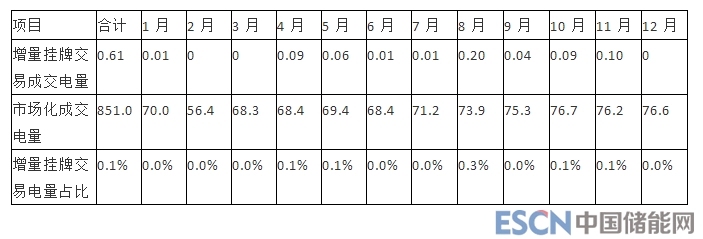 表 2-16:2018 年月度增量掛牌交易成交電量統(tǒng)計(jì)(單位:億千瓦時(shí))