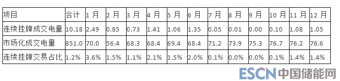 表 2-14:2018 年月度連續(xù)掛牌交易成交電量統(tǒng)計(jì)(單位:億千瓦時(shí))
