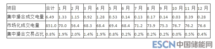 2018年,由于大部分電量都通過(guò)雙邊協(xié)商的方式成交,集中市場(chǎng)整體成交規(guī)模減小。月度集中撮合交易中,購(gòu)方共有272家電力用戶(hù)(售電公司)參與申報(bào),累計(jì)申報(bào)電量20億千瓦時(shí);售方累計(jì)申報(bào)電量396.48億千瓦時(shí)。全年集中撮合交易累計(jì)成交電量6.49億千瓦時(shí),占省內(nèi)市場(chǎng)化成交電量的0.76%。