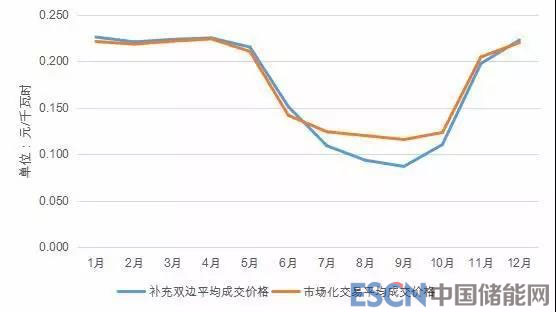 由于雙邊協(xié)商補(bǔ)充交易為每月最后開(kāi)展的月度直接交易,價(jià)格全年來(lái)看波動(dòng)幅度較大,受集中市場(chǎng)成交量?jī)r(jià)信息和省內(nèi)供求關(guān)系影響,呈現(xiàn)出汛期均價(jià)低于年度、月度雙邊協(xié)商交易均價(jià)的特點(diǎn)。從全年來(lái)看,雙邊協(xié)商補(bǔ)充交易最低成交價(jià)為9月的每千瓦時(shí)0.08685元,最高成交價(jià)為12月的每千瓦時(shí)0.22274元,全年售方平均成交價(jià)為0.19309元,處于雙邊協(xié)商交易均價(jià)與集中市場(chǎng)均價(jià)之間。
