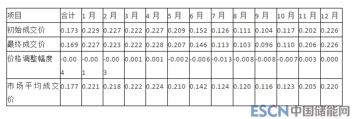 月度雙邊協(xié)商交易與年度雙邊協(xié)商交易類(lèi)似,在集中市場(chǎng)交易結(jié)束、交割月之前,可以對(duì)已簽訂的雙邊合約價(jià)格進(jìn)行調(diào)整。通過(guò)實(shí)行“基準(zhǔn)價(jià)格+浮動(dòng)機(jī)制”的價(jià)格調(diào)整機(jī)制,為市場(chǎng)主體提供了一種科學(xué)的價(jià)格避險(xiǎn)手段,在防范市場(chǎng)風(fēng)險(xiǎn)的同時(shí),不斷提高市場(chǎng)的資源配置效率。2018年,月度雙邊協(xié)商交易售方初成交價(jià)每千瓦時(shí)0.17327元,最終成交價(jià)每千瓦時(shí)0.16911元,較初始電價(jià)每千瓦時(shí)降低 0.416分。