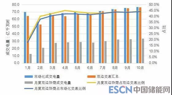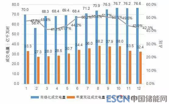 2018年具體分配比例為:年度46.78%、月度52.06%、日前交易電量為1.16%。
