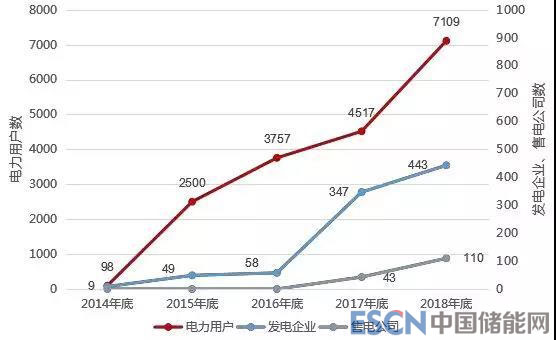 在開(kāi)放的市場(chǎng)環(huán)境下,截至2018年12月底,共7662家市場(chǎng)主體完成市場(chǎng)準(zhǔn)入。電廠(chǎng)方面,共 443家電廠(chǎng)完成市場(chǎng)準(zhǔn)入,其中,水電202家,風(fēng)電153 家,光伏77 家,火電11 家,合計(jì)裝機(jī)7366.4萬(wàn)千瓦;用戶(hù)方面,共7109家電力用戶(hù)完成市場(chǎng)準(zhǔn)入;售電公司方面,共110家售電公司完成市場(chǎng)準(zhǔn)入。