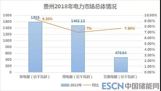 2018年,貴州全省市場(chǎng)化交易電量完成470.04億千瓦時(shí),同比2017年增長(zhǎng)7.68%。2018年,貴州統(tǒng)調(diào)發(fā)電量1585億千瓦時(shí),同比增長(zhǎng)9.28%。其中火電發(fā)電量1058.35億千瓦時(shí),同比增長(zhǎng)9.5%;水電發(fā)電量442.48億千瓦時(shí),同比增加6.6%;風(fēng)電發(fā)電量68.41億千瓦時(shí),同比增長(zhǎng)8.4%;太陽(yáng)能發(fā)電量15.76億千瓦時(shí)。同期貴州全社會(huì)用電量1482.12億千瓦時(shí),相比2017年增長(zhǎng)7%。