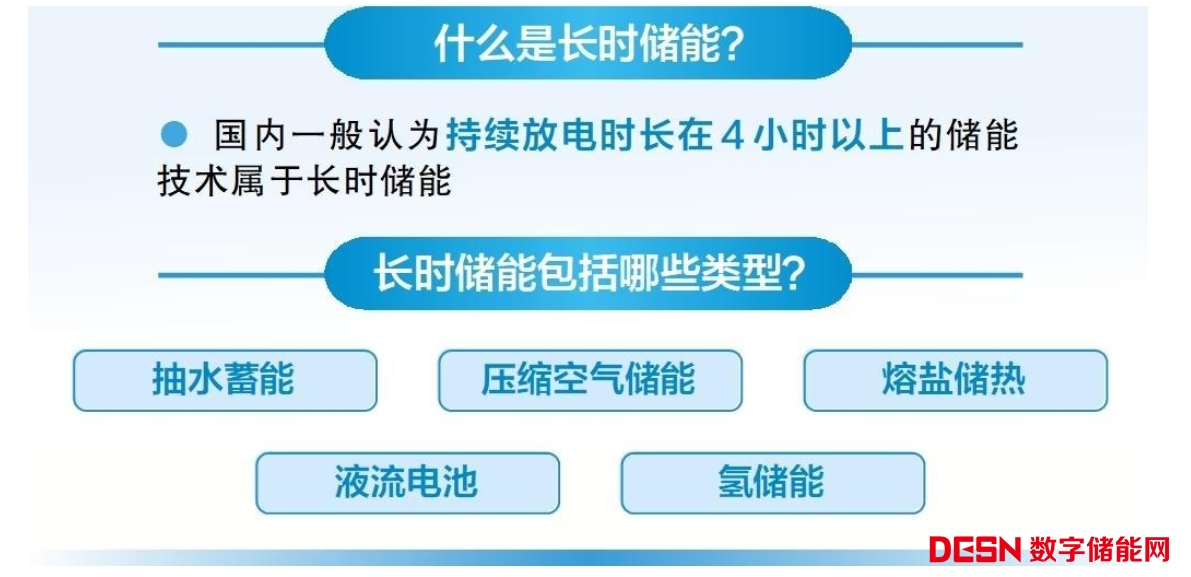 目前,國內外對于長時儲能的放電時長尚未統(tǒng)一定義,國內一般認為持續(xù)放電時長在4小時以上的技術屬于長時儲能,主要包括抽水蓄能、壓縮空氣儲能、熔鹽儲熱、液流電池和氫儲能等5種類型。發(fā)展長時儲能對我國保障能源安全、推動能源綠色低碳轉型、促進能源高質量發(fā)展具有重要意義。