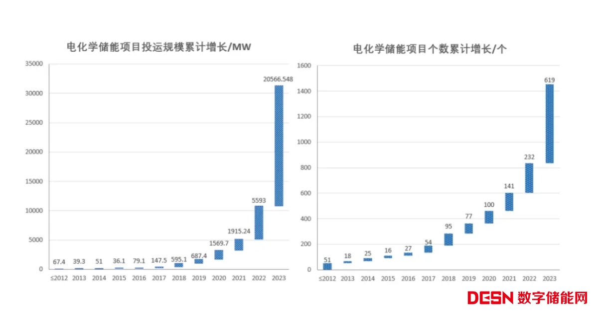圖1 我國電化學(xué)儲能項(xiàng)目歷年投運(yùn)規(guī)模及數(shù)量增長情況