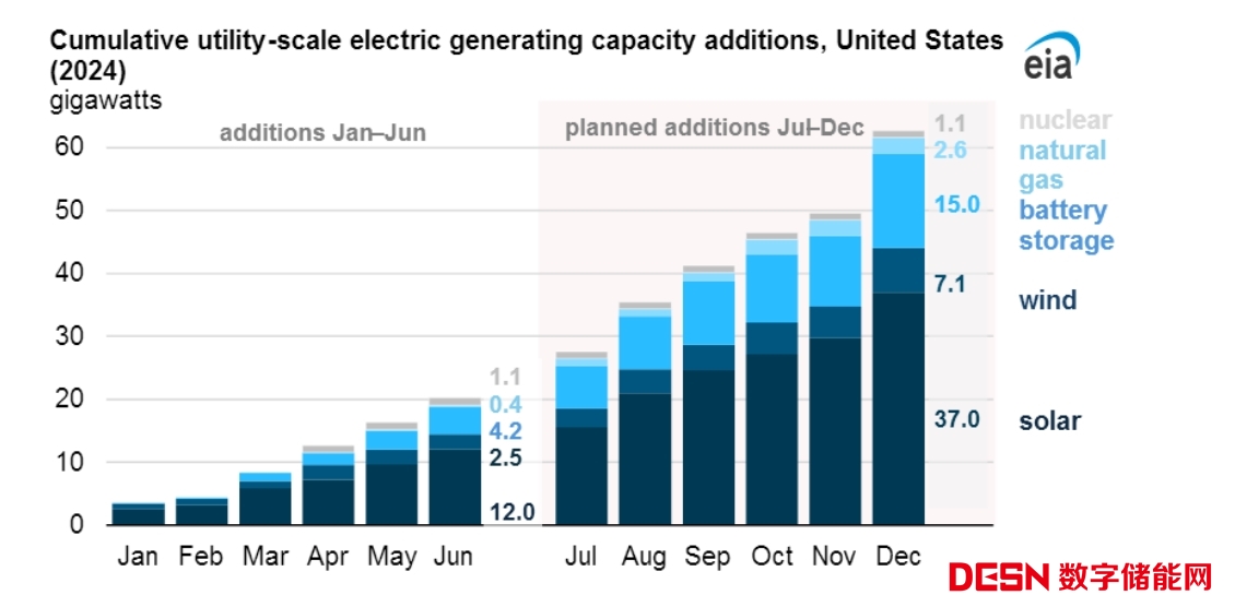 圖1美國將在2024年1~12月部署的各種發(fā)電設(shè)施(GW)