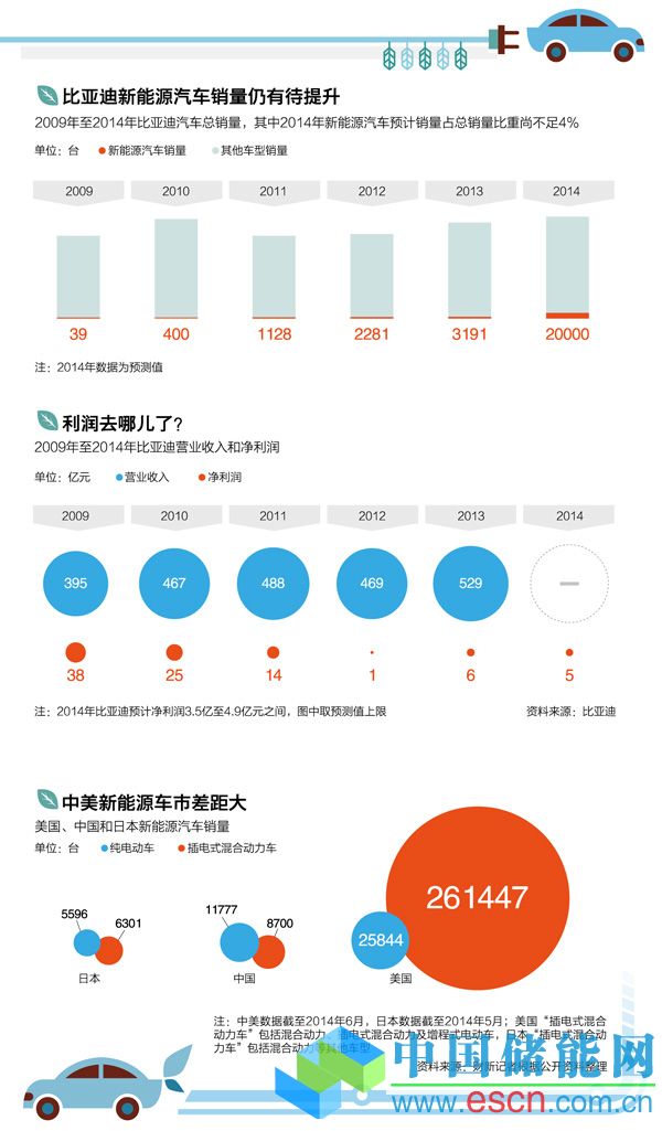 比亞迪方面則預測,公司新能源汽車業(yè)務銷售收入將達到100億元以上,相對于2013年10億元的銷售額,差不多將翻10倍。