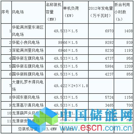 大唐河北崇禮西橋梁風(fēng)電場(chǎng),其中的33臺(tái)1.5MW風(fēng)電機(jī)組,容量49.5MW,在2011年3月全部投入運(yùn)營(yíng), 在2012年的發(fā)電量為12621萬(wàn)千瓦時(shí),利用小時(shí)數(shù)2550h。