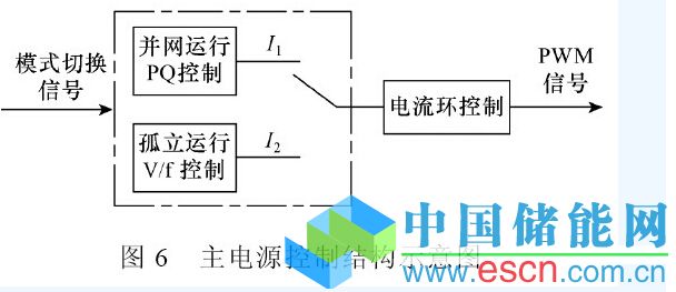 如采用圖6 所示控制結(jié)構(gòu),在切換前后,兩種控制模式中使用相同的電流內(nèi)環(huán),模式切換時(shí)僅對(duì)外環(huán)控制器進(jìn)行切換。在模式切換中,采用合理的補(bǔ)償控制算法和切換控制邏輯,可有效降低模式切換過程中的暫態(tài)沖擊[36]。