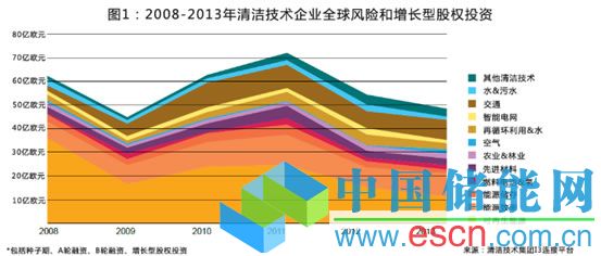 清潔技術(shù)風(fēng)險(xiǎn)資本仍主要是由能源相關(guān)技術(shù)(2013年51%)組成,盡管相比2010年的77%下降了很多,更多的能源要素是有關(guān)效率的,而不是可再生發(fā)電。這可以通過(guò)其他清潔技術(shù)領(lǐng)域獲得的好處來(lái)部分解釋?zhuān)▓D1所示),還有可再生能源泡沫經(jīng)濟(jì)后的前景(尤其是太陽(yáng)能),除了美國(guó)和歐洲一些備受矚目的破產(chǎn)事件,自從2008年刺激消費(fèi)的炒作和頂峰之后很多風(fēng)險(xiǎn)投資者已經(jīng)退出。