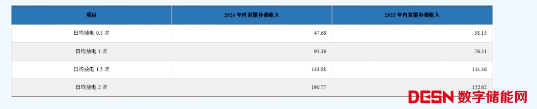 (3) 當(dāng)前日均充放次數(shù)為0.3~0.5次,實(shí)際部分項(xiàng)目并未受電網(wǎng)調(diào)度(全部折算為2小時(shí)的配儲(chǔ),取0.5次),取日均放電次數(shù)0.25次;