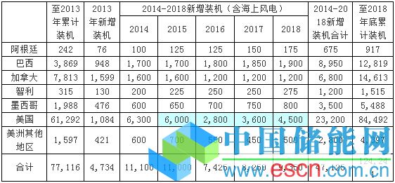 表4 2014-2018年美洲風(fēng)能市場(單位:MW)