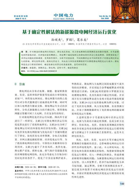 孫瑛爽, 羅聰, 葛樂矣. 基于確定性解法的新能源微電網(wǎng)經(jīng)濟運行優(yōu)化[J]. 中國電力, 2020, 53(10): 149-155.
