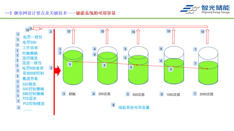 儲(chǔ)能綜合效率是以交流電網(wǎng)并網(wǎng)點(diǎn)為卡口進(jìn)行評估,儲(chǔ)能系統(tǒng)的綜合效率應(yīng)該是實(shí)際放電量減控制損耗、減散熱保溫?fù)p耗、再除以實(shí)際充電量的。充電開始算起,圖中是充電可用率、放電可用率、能量轉(zhuǎn)換效率和系統(tǒng)損耗的四個(gè)個(gè)定義,這是我們微電網(wǎng)在做儲(chǔ)能選型和設(shè)計(jì)都應(yīng)該密切關(guān)注和為客戶考慮的。