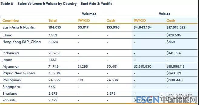 東亞地區(qū)離網(wǎng)項(xiàng)目銷售額