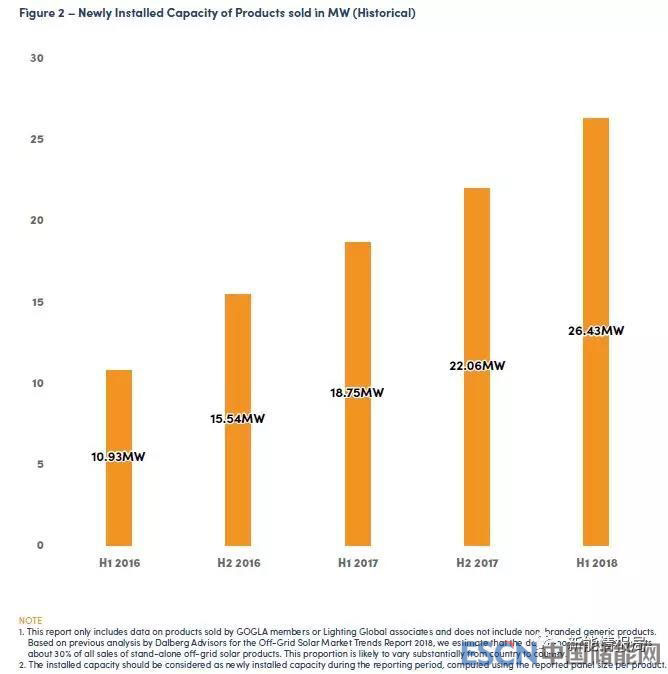 根據(jù)該報(bào)告,2018年上半年,全球離網(wǎng)光伏項(xiàng)目共新增裝機(jī)26.43MW。