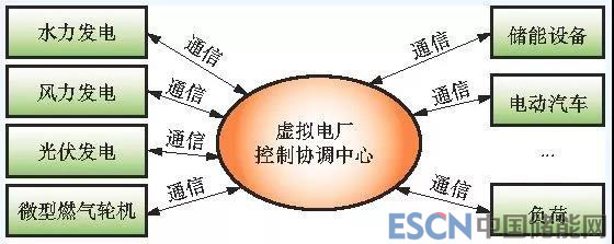 虛擬電廠并未改變每個分布式電源并網的方式,而是通過先進的控制、計量、通信等技術聚合分布式電源、儲能系統(tǒng)、可控負荷、電動汽車等不同類型的分布式能源并通過更高層面的軟件構架實現(xiàn)多個分布式能源的協(xié)調優(yōu)化運行。它能夠聚合微網所轄范圍之外的分布式電源,更有利于資源的合理優(yōu)化配置及利用。