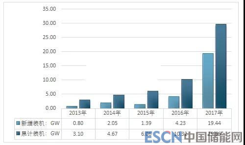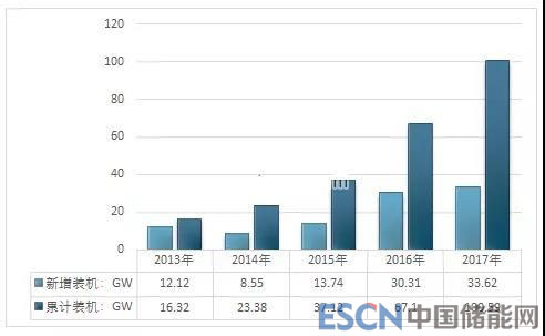 2013-2017年我國光伏新增統(tǒng)計(jì)