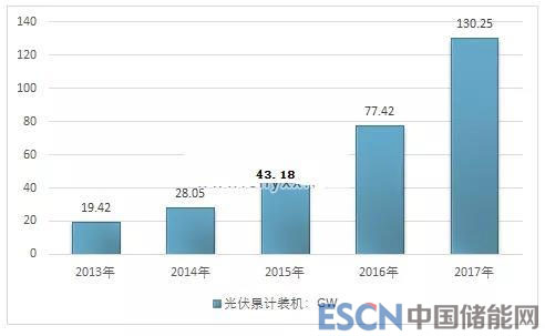 2013-2017年我國光伏累計(jì)裝機(jī)容量統(tǒng)計(jì)