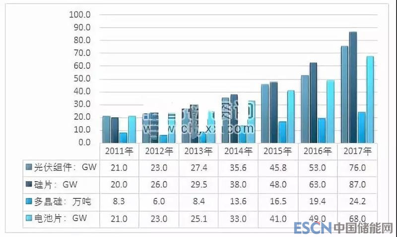 2011-2017年我國光伏產(chǎn)業(yè)主要產(chǎn)品產(chǎn)量統(tǒng)計(jì)