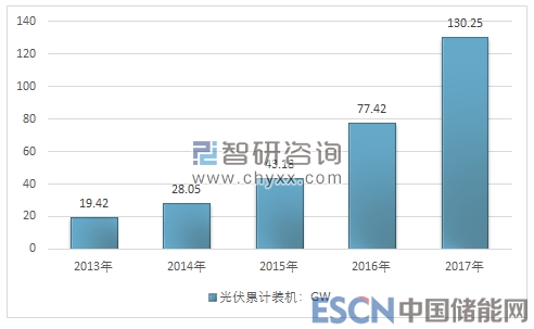 2013-2017年我國光伏累計(jì)裝機(jī)容量統(tǒng)計(jì)