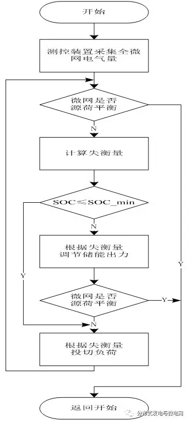 ⑥:根據(jù)③中計(jì)算所得的源荷失衡量調(diào)節(jié)儲(chǔ)能系統(tǒng)出力;