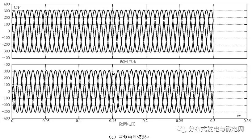 3)0.16s后敏感負(fù)荷增加35kW,整體仿真波形如圖6所示: