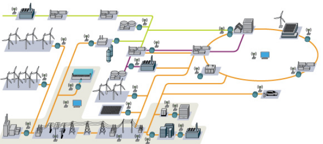 電力公司在電網(wǎng)中采用更多的分布式發(fā)電(DER),其中包括太陽(yáng)能、風(fēng)能、儲(chǔ)能。圖中的圓圈代表微電網(wǎng)