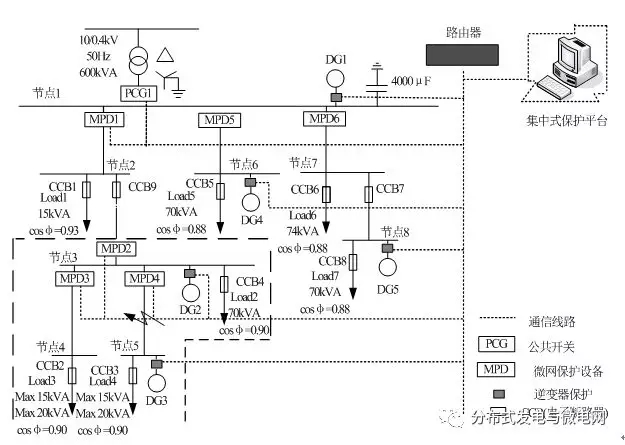 圖4 微電網(wǎng)系統(tǒng)集中式保護(hù)方案