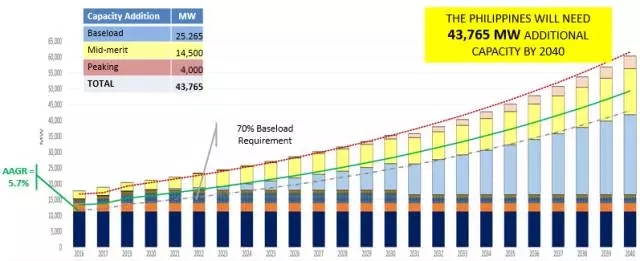 到2040年,菲律賓的新增裝機(jī)容量將達(dá)到43765兆瓦。