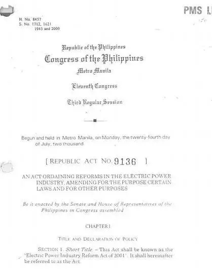 2001年電力行業(yè)改革法案