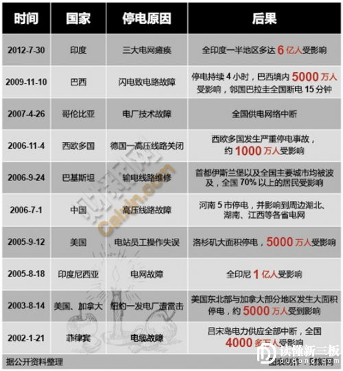 大停電造成的災(zāi)難顯而易見(jiàn),但全球范圍內(nèi)的大停電事件卻屢見(jiàn)不鮮。2012年7月30、31日印度大停電,6.7億人口在黑暗中度過(guò)了兩天,占到了全世界人口的十分之一,起因只是印度北部電網(wǎng)一回400千伏交流輸電線路故障跳閘。
