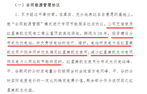 公告顯示,國電能源將按照合同約定的方式,就紅星美凱龍智能微電網(wǎng)項目中的四項節(jié)能項目,以建設(shè)分布式光伏電站、安裝充電樁、建設(shè)儲能電站、簽訂售電協(xié)議的順序分部實施。本協(xié)議包含《合同能源管理協(xié)議》、《儲能電站投資運(yùn)營管理合同》、《充電樁安裝運(yùn)營協(xié)議》、《電力交易(售電)協(xié)議書》四個部分。