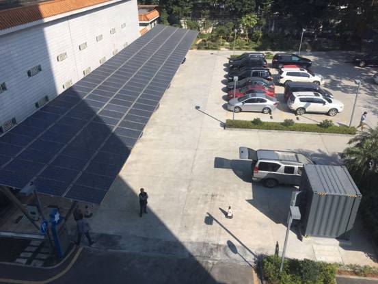 在東莞局客服中心,我們能看到,已調(diào)試完畢的第一套虛擬同步儲能裝置,包含一臺100千瓦的逆變器和一個儲能單元,它的一端連接著2套光伏發(fā)電系統(tǒng),另一端是7個充電樁,實現(xiàn)了光-儲-充一體化,有效提升了光伏利用率。