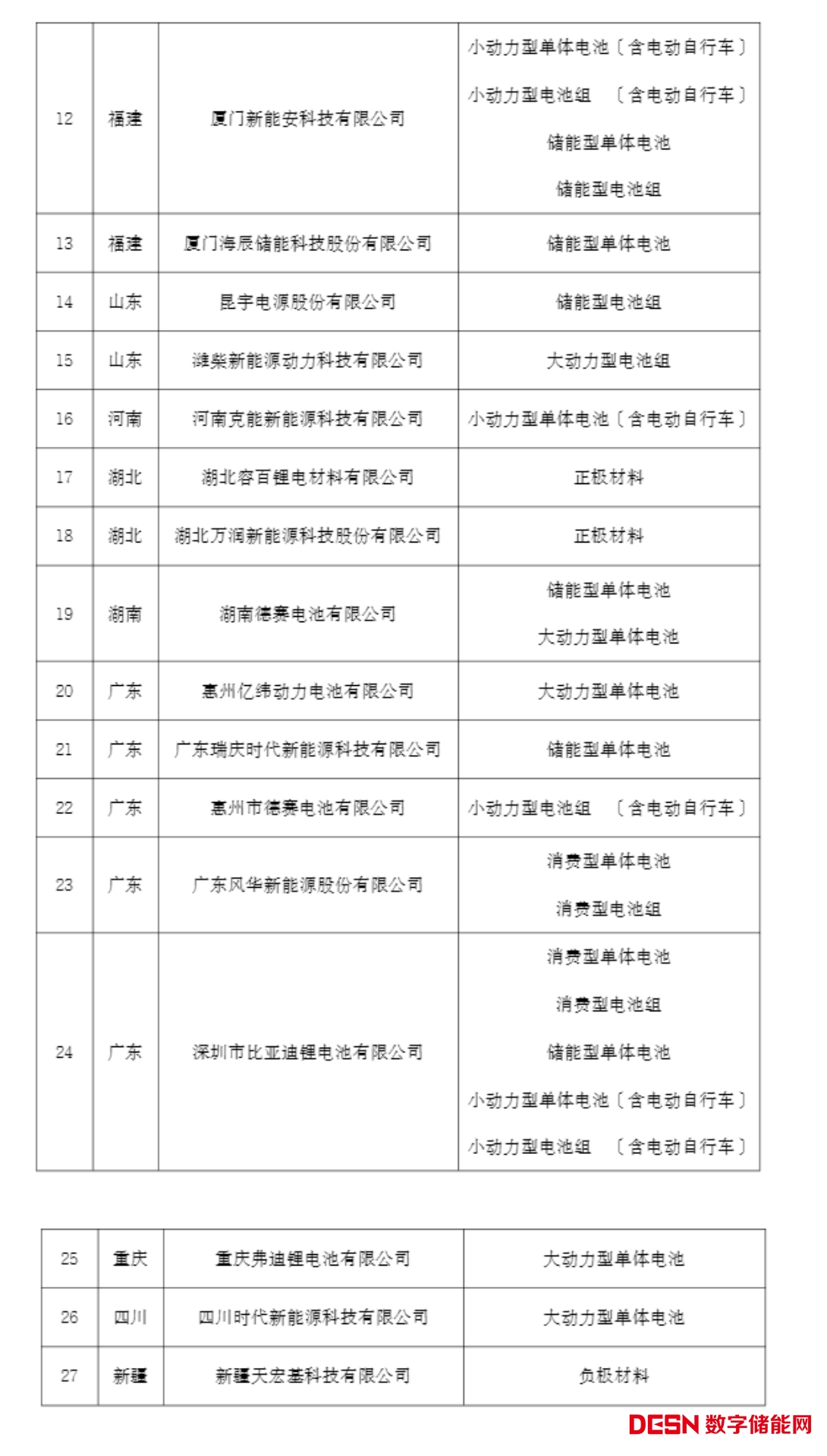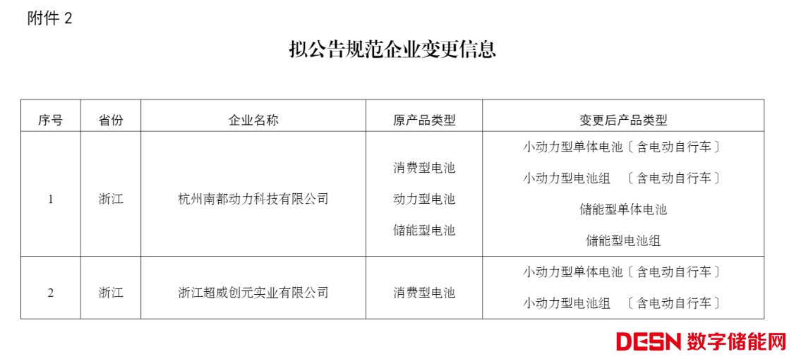中國儲(chǔ)能網(wǎng)訊:根據(jù)《鋰離子電池行業(yè)規(guī)范條件(2024年本)》《鋰離子電池行業(yè)規(guī)范公告管理辦法(2024年本)》,經(jīng)企業(yè)自愿申報(bào)、省級主管部門推薦、專家評審、現(xiàn)場核查等程序,現(xiàn)將擬公告符合《鋰離子電池行業(yè)規(guī)范條件》企業(yè)名單(第八批)予以公示(見附件1)。已公告企業(yè)杭州南都動(dòng)力科技有限公司、浙江超威創(chuàng)元實(shí)業(yè)有限公司產(chǎn)品類型發(fā)生變更,擬更新有關(guān)公告信息(見附件2)。以上信息一并予以公示。