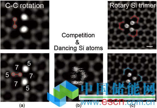 中國儲(chǔ)能網(wǎng)訊:最近,中國科學(xué)院金屬研究所沈陽材料科學(xué)國家(聯(lián)合)實(shí)驗(yàn)室固體原子像研究部楊志卿副研究員、先進(jìn)炭材料研究部尹利長副研究員等與美國橡樹嶺國家實(shí)驗(yàn)室研究人員合作,首先利用像差校正Z襯度電子顯微學(xué)成像觀察到了石墨烯拓?fù)淙毕萁Y(jié)構(gòu)的動(dòng)態(tài)演變、以及單個(gè)Si原子與拓?fù)淙毕莸膭?dòng)態(tài)交互并最終摻雜到石墨烯的微觀過程,然后采用第一性原理計(jì)算揭示了這一原子結(jié)構(gòu)演化的微觀機(jī)理。直接觀察并理解單個(gè)原子及其與周圍介質(zhì)材料動(dòng)態(tài)交互行為有助于人們認(rèn)識(shí)物質(zhì)結(jié)構(gòu)的微觀演變并預(yù)測(cè)新結(jié)構(gòu)的形成,對(duì)于納米科學(xué)技術(shù)的發(fā)展具有重要意義。