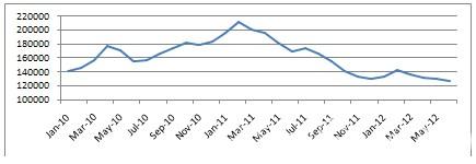 第一個原因,鈷酸鋰2012年上半年價格跌破20萬元/噸(圖2),這種價位使得數(shù)碼電池對正極材料的價格敏感性下降,尤其是隨著鈷酸鋰價格逐步下降,部分鋰電池廠家改變原來計劃轉(zhuǎn)而采購鈷酸鋰作為正極材料。面對這種情況,一些三元廠家也開始生產(chǎn)三元材料摻鈷酸鋰的產(chǎn)品,如今年寧波金和的產(chǎn)量增長動力主要來自于ATL三元材料摻鈷酸鋰的訂單;這種產(chǎn)品的主要競爭力在于很好地解決了三元材料原來存在壓實(shí)密度低的問題,但是成本并沒有提升很多。