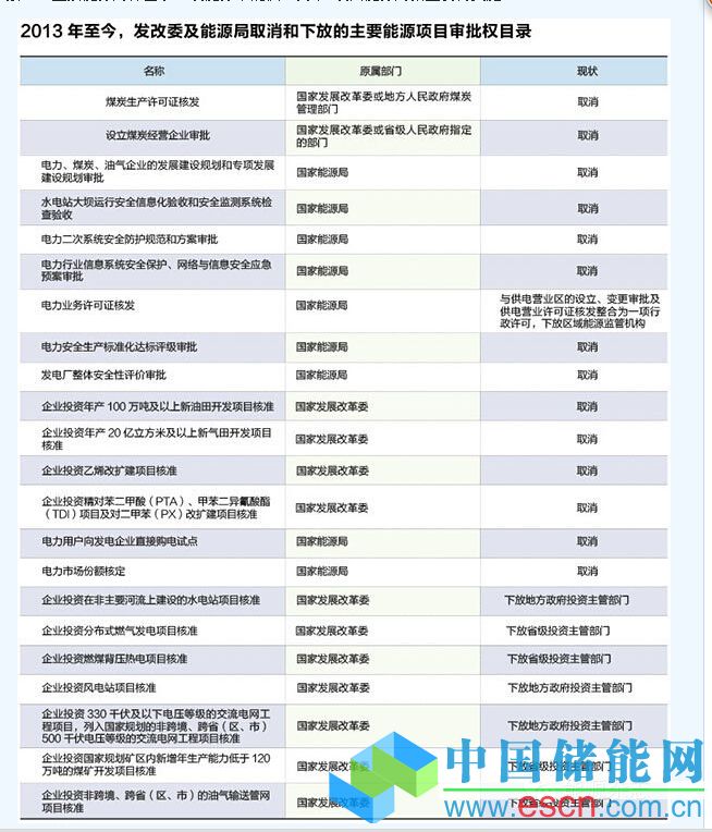 從2013年5月開(kāi)始,國(guó)務(wù)院陸續(xù)公布了中央國(guó)家機(jī)關(guān)取消和下放行政審批項(xiàng)目的名錄。在這幾批名單中,發(fā)改委及其下屬的能源局原本所擁有的能源類(lèi)相關(guān)審批項(xiàng)目有22項(xiàng)。其中,有7項(xiàng)被下放到了地方政府的主管機(jī)構(gòu)。