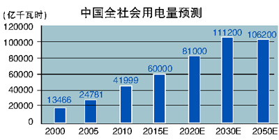 2021年至2030年,預(yù)計(jì)全社會(huì)用電量平均每年將新增3000億度,需求壓力進(jìn)一步降低。屆時(shí)第三代核電技術(shù)將更加成熟,氣電發(fā)展條件更加成熟,太陽(yáng)能發(fā)電成本將明顯降低,同時(shí),還可從國(guó)外輸入一定規(guī)模的電力。通過加大核電、氣電、太陽(yáng)能發(fā)電發(fā)展力度,優(yōu)化發(fā)電裝機(jī)結(jié)構(gòu)和電量結(jié)構(gòu),提高清潔電力比重完全可以滿足新增電力需求。根據(jù)測(cè)算,2021年至2030年期間,平均每年新增2000萬(wàn)千瓦煤電裝機(jī)、1000萬(wàn)千瓦常規(guī)水電裝機(jī)、1000萬(wàn)千瓦核電裝機(jī)、800萬(wàn)千瓦的燃?xì)獍l(fā)電裝機(jī)、1500萬(wàn)千瓦風(fēng)電裝機(jī)、1500萬(wàn)千瓦太陽(yáng)能發(fā)電裝機(jī),以及100萬(wàn)千瓦的生物質(zhì)、余溫、余熱、余壓和垃圾發(fā)電裝機(jī)就可滿足電量平衡的需要,期間水電移民和環(huán)保壓力巨大,同時(shí)需要加大抽水蓄能電站的建設(shè),以滿足電網(wǎng)安全穩(wěn)定運(yùn)行的需要。