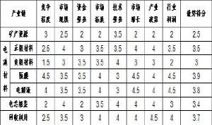 圖表 2 中國鋰離子電池產(chǎn)業(yè)鏈各環(huán)節(jié)投資價值綜合評分表