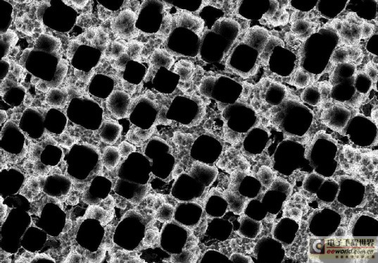 研究人員稱納米多孔硅的制備比硅納米線更簡單。微孔尺寸約1微米寬,10至50微米長,在硅晶片兩端形成正電荷和負(fù)電荷,然后再浸入氫氟酸溶劑中,氟離子攻擊一端的硅形成孔洞。該制備過程簡單,且生產(chǎn)適應(yīng)能力強(qiáng)。目前這種電池壽命為200-250次,比納米線電池更長。因此納米多孔硅材料有潛力顯著提高鋰離子電池的存儲容量,未來可廣泛應(yīng)用于商業(yè)、軍事和航空航天領(lǐng)域。