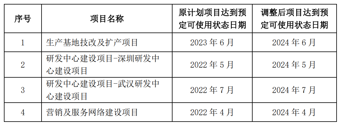 《科創(chuàng)板日報》記者注意到,正弦電氣出現(xiàn)部分募投項目變更的情況,其中包括推遲項目預(yù)定可使用狀態(tài)日期。*