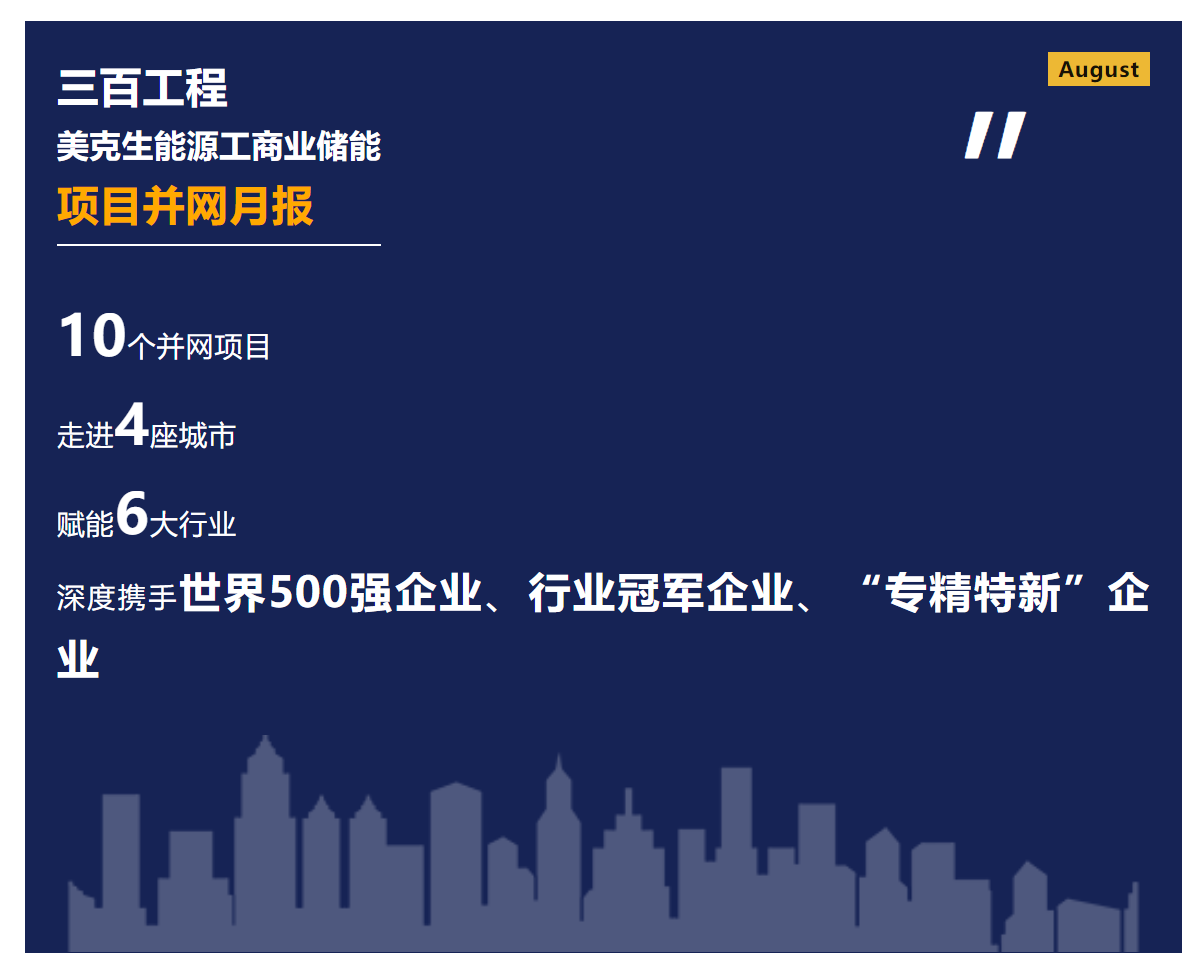 創(chuàng)新的模式,高效地落地,8月,美克生能源“三百工程”再次連連迎來(lái)“工商業(yè)儲(chǔ)能并網(wǎng)”喜訊。