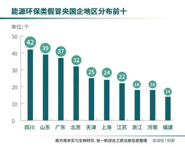 據(jù)南方周末記者不完全統(tǒng)計(jì),2021年10月至2023年6月,國(guó)資委和各家央國(guó)企公布的假冒央企、國(guó)企,合計(jì)超過(guò)1000家,其中,能源、環(huán)保領(lǐng)域成為“重災(zāi)區(qū)”,至少672家假冒央國(guó)企涉及上述行業(yè),其中四川、山東、廣東為身份造假地區(qū)的TOP3。