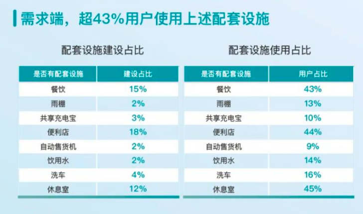 但據(jù)統(tǒng)計(jì),僅15%的充電站配備了餐飲等服務(wù),43%的用戶有餐飲需求,缺口巨大。