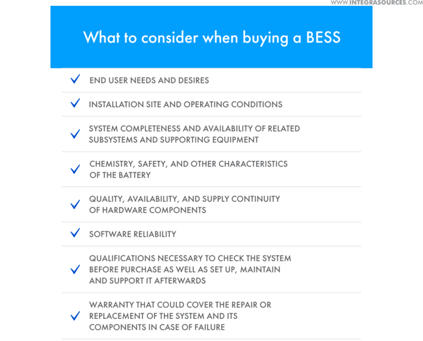 When choosing a battery energy storage system, you should consider plenty of factors other than its cost. They include: