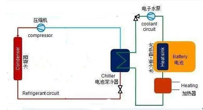 液冷系統(tǒng),是當(dāng)前動力電池?zé)峁芾淼臒衢T研究方向,利用冷卻液熱容量大且通過循環(huán)可以帶走電池系統(tǒng)多余熱量的性能,實現(xiàn)電池包的最佳工作溫度條件。液冷統(tǒng)的基本組成包括:液冷板,液冷機組(加熱器選配),液冷管路(包括溫度傳感器、閥門),高低壓線束;冷卻液(乙二醇水溶液)等。
